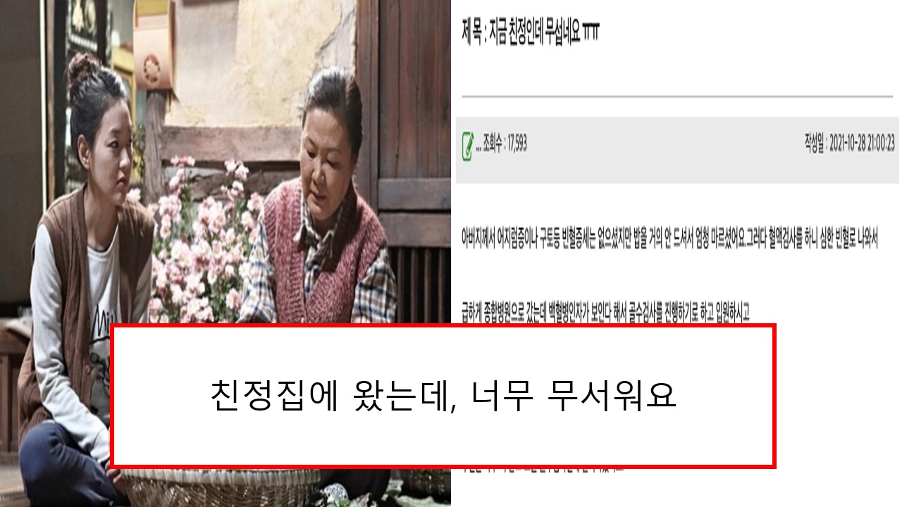 급하게 종합병원으로 갔는데 백혈병인자가 보인다 해서 골수검사를 진행하기로 하고 입원하시고