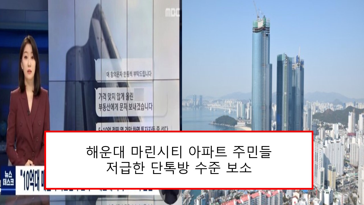 가격에 맞지 않는 부동산에게 문자를 보낸다고 해운대 마린시티 아파트 주문들의 단톡방이 너무 무섭다