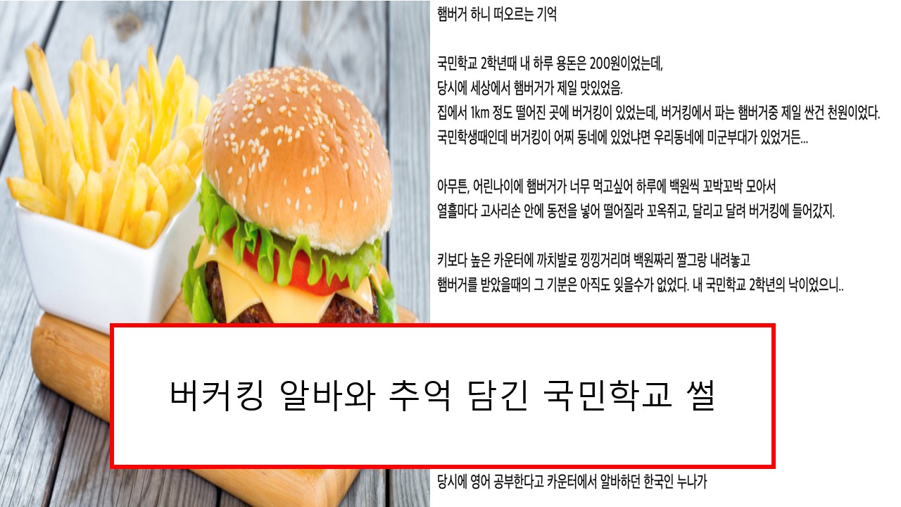 국민학생때인데 버거킹이 어찌 동네에 있었냐면 우리동네에 미군부대가 있었거든...