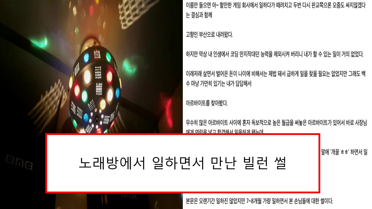 그 곳이 야간 '노래방' 아르바이트 였다. 그냥 카운터만 보면 된다는 사장님의 말에 '개꿀 ㅎㅎ' 하면서 일을 시작했지만