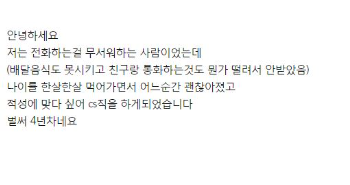 전화상담으로 근무 하면서 전화 예절을 배운 4년차 직원