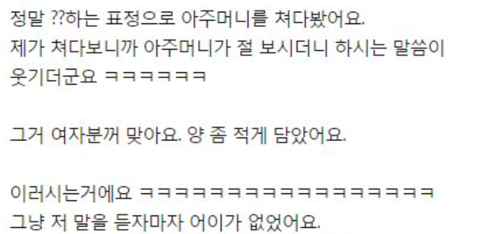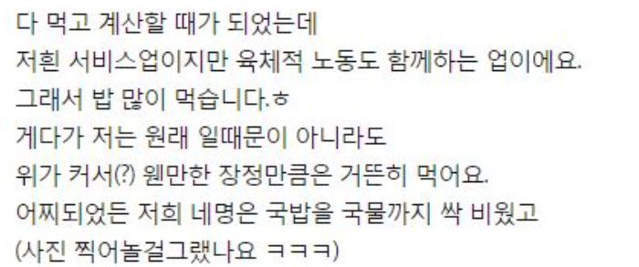 음식 많이 주면 다 못먹을 것 같아서 조금만 주는 직원