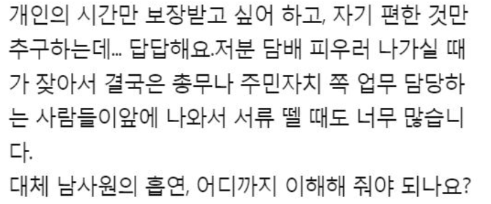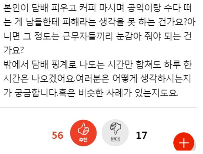 일은 안하고 매번 담ㅂ ㅐ 를 피는 사원 때문에 미ㅊ ㅣ겠어요