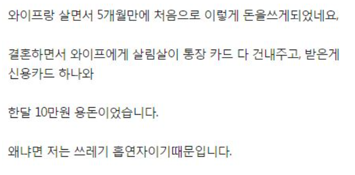 결혼했는데 남자가 한달 용돈 10만원으로 살아가는 것이 정상인가요