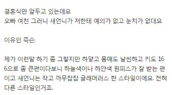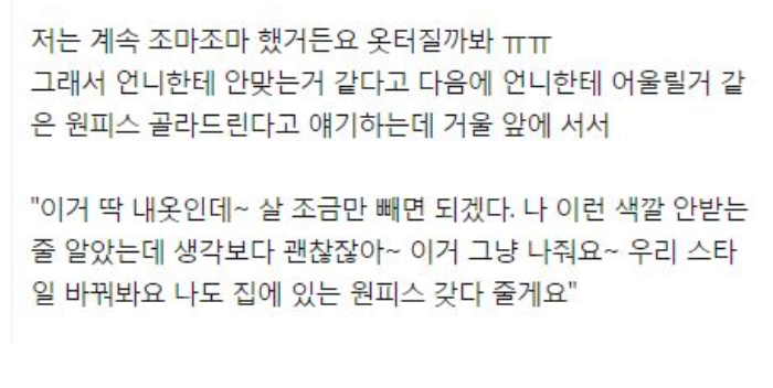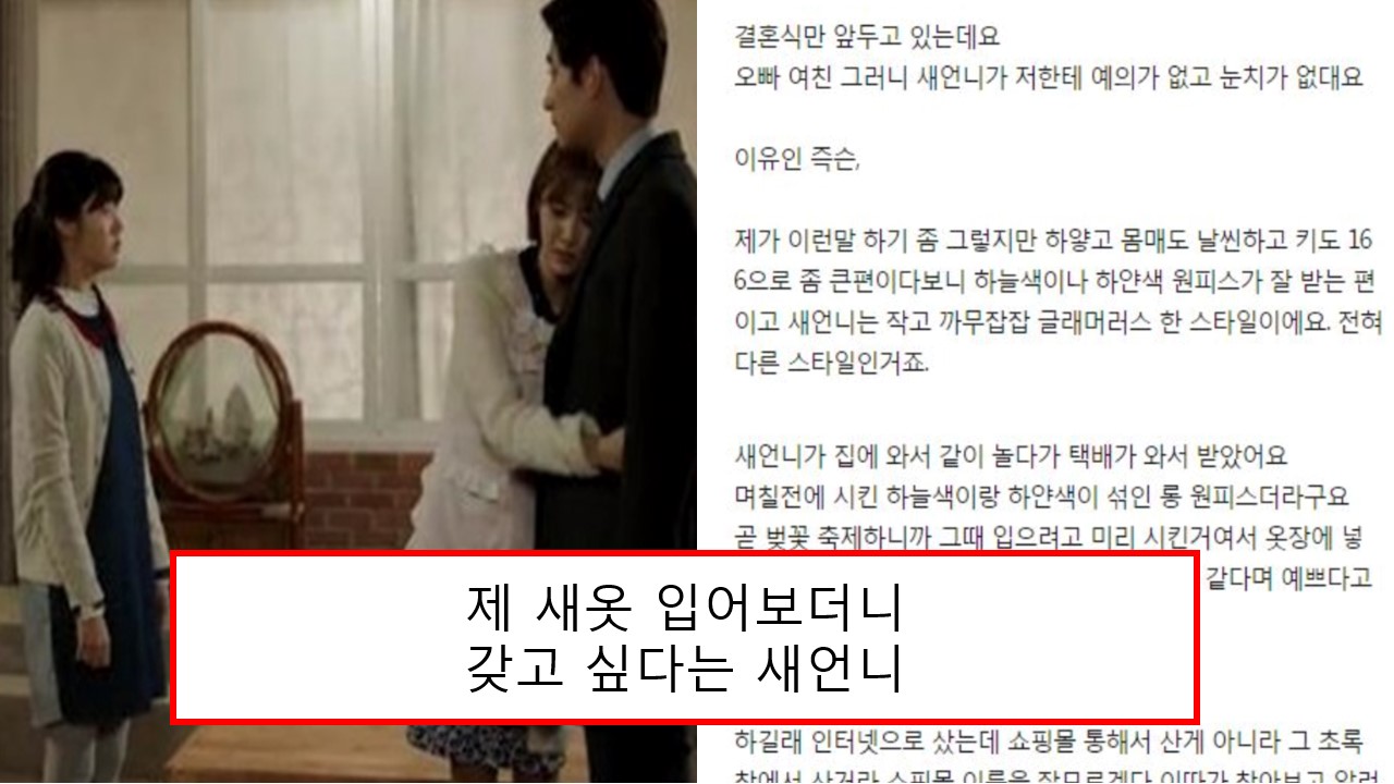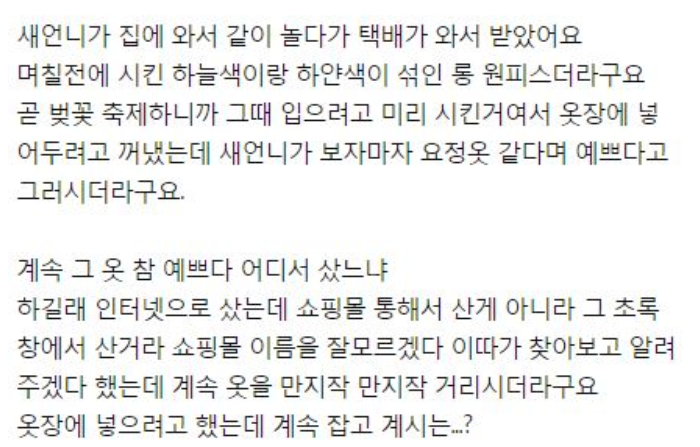 인터넷으로 시킨 옷을 보고 눈치로 입게 해달라는 새언니