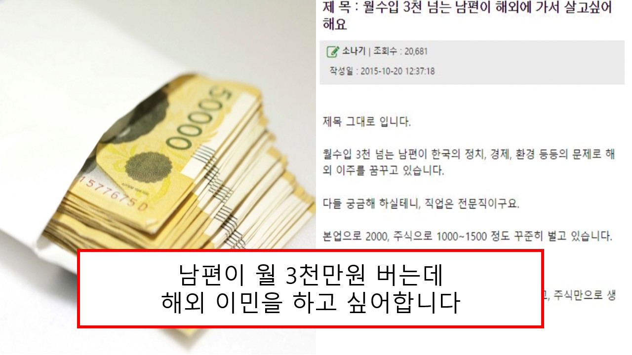 월 수입 3천만원인데 남편이 해외에서 살고 싶어 합니다