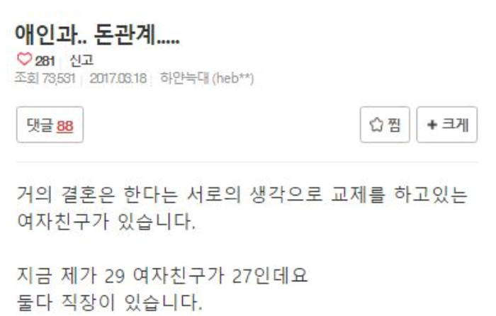 꽃다운 시절 저축으로 돈 못쓰는 여친이 안타까워요