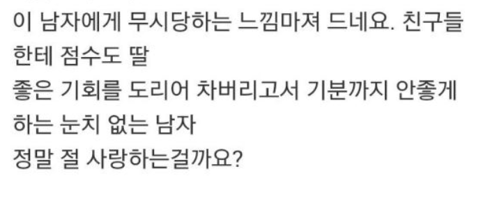 눈치 없는 남친, 너무 창피하고 싫어지네요