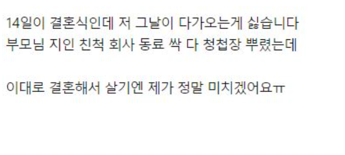 결혼 2주전인데 결혼하기 싫어요