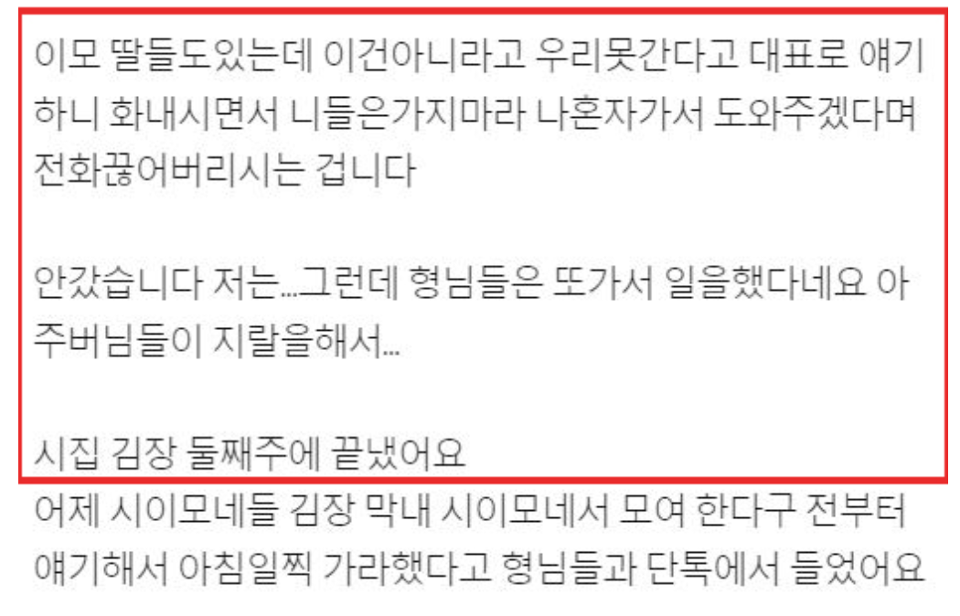 종.ㄴ. 취급하는 시이모네 김장까지 도와야 합니까 ?