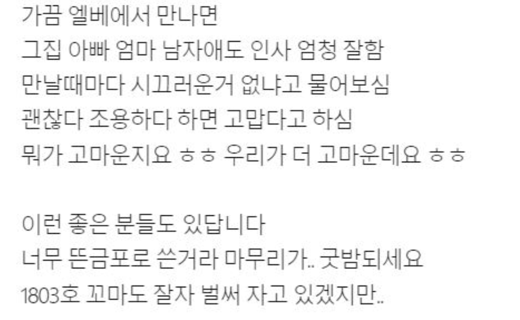 바로 윗집에 엄청난 개념 엄마 때문에 층간 소음이 제로입니다.