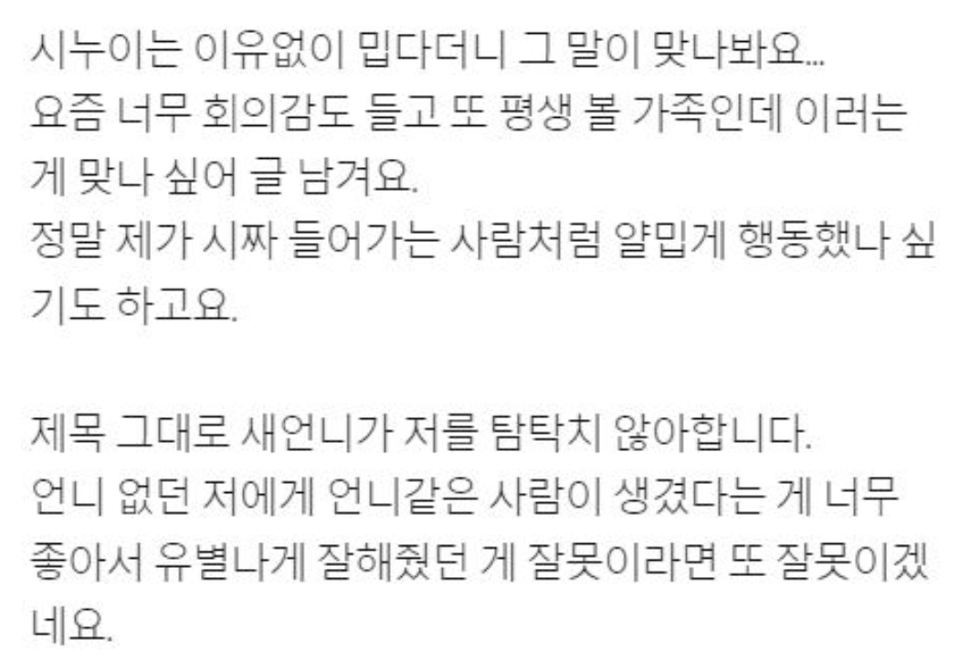 가족관계 특성상 시누이는 미울 수 밖에 없다봐요