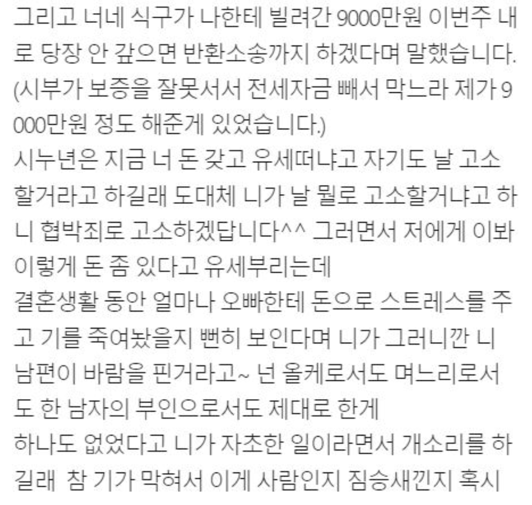 남편이 시누이랑 짜고 다른 여자를 만났다고 합니다