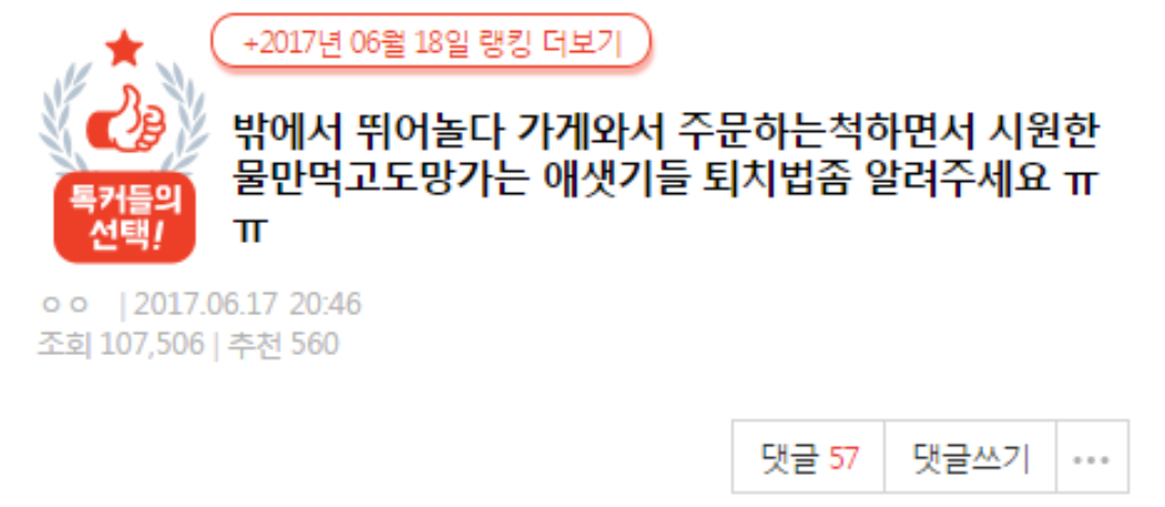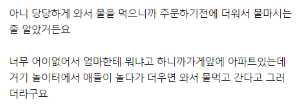 가게에서 물만 먹고 도망가는 아이들 때문에 너무 힘들어요