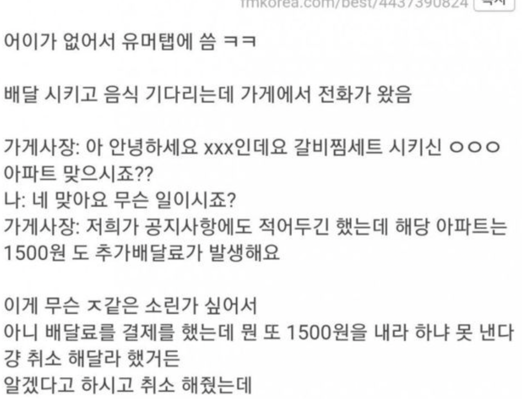 우리집 아파트 배달비 1500원을 더 받는 이유를 이제야 알았다