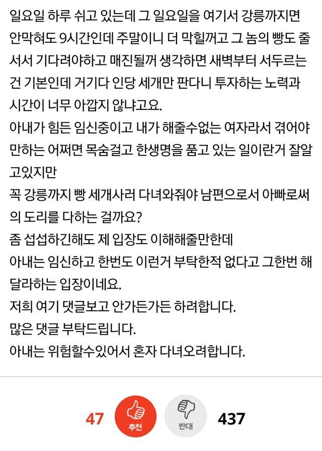 아내가 임신중 먹고싶다는 음식때문에 다퉜습니다