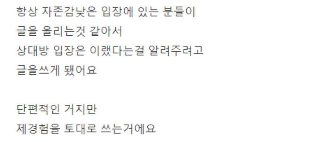 평소 자존감이 낮은 분들에게 한번 봐주셨으면 좋겠습니다