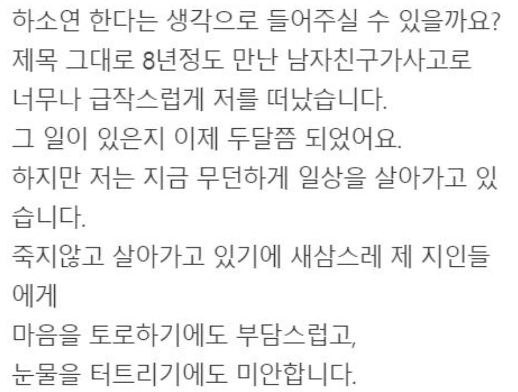 8년을 만난 남자친구가 하늘나라로 떠났습니다