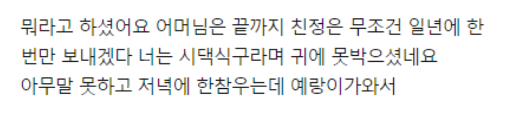 상견례 자리에서 1년에 딱 한번만 친정 보낸다고 발언한 예비 시어머니