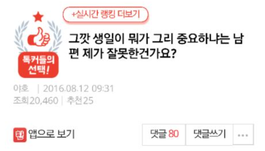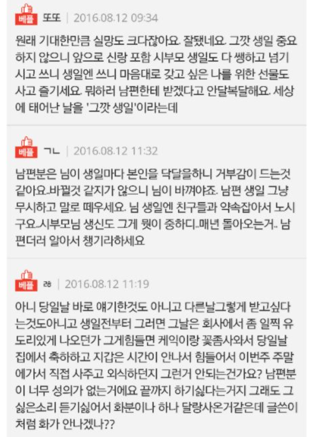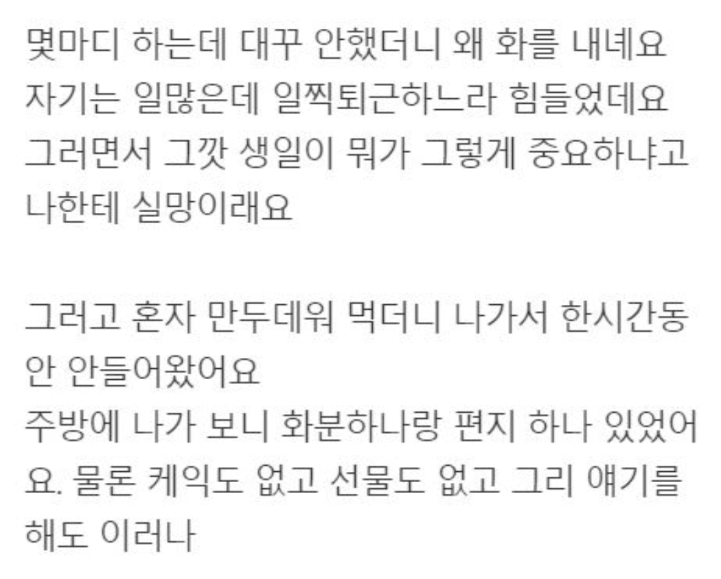 결혼하고 나니 생일이 대수라고 발언한 남편