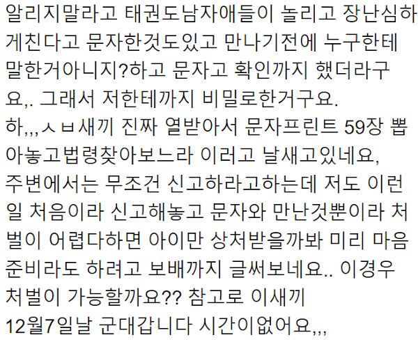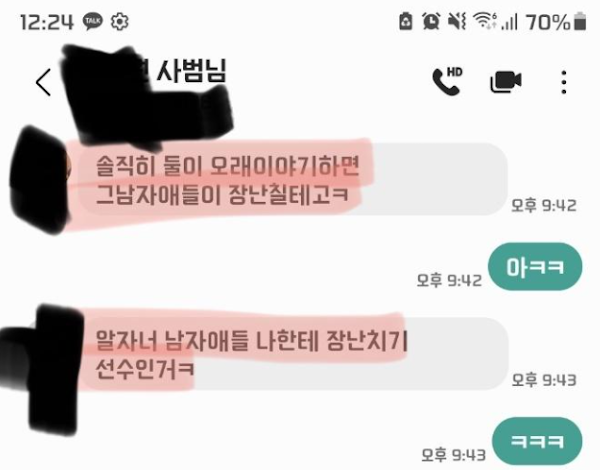 본인이 가르치는 초등학교 6학년 여자애한테 사귀자고 연락한 태권도 사범