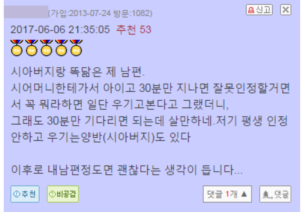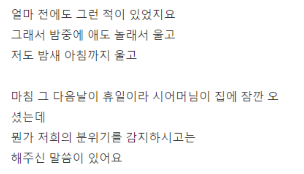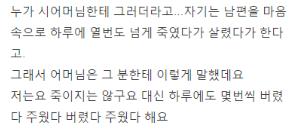 30년 넘는 부부 생활의 경험으로 위로를 해주는 시어머니