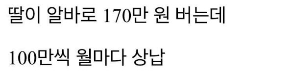 월급 170만원 아르바이트로 돈을 버는데 매달 100만원을 요구하는 역대급 진상 행동