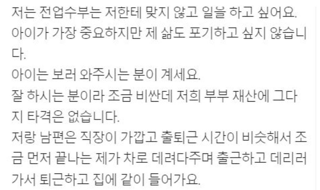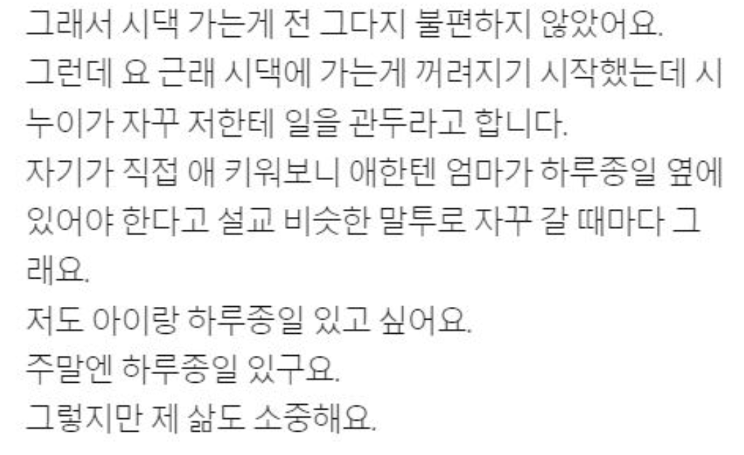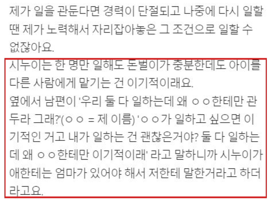 남편도 아니고 직장을 그만두라고 독촉하는 시누이