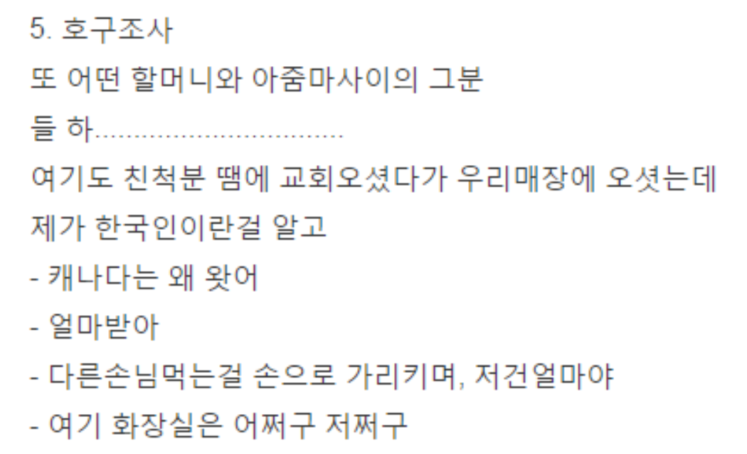 캐나다에서 만났던 레전드 한국 진상 손님들