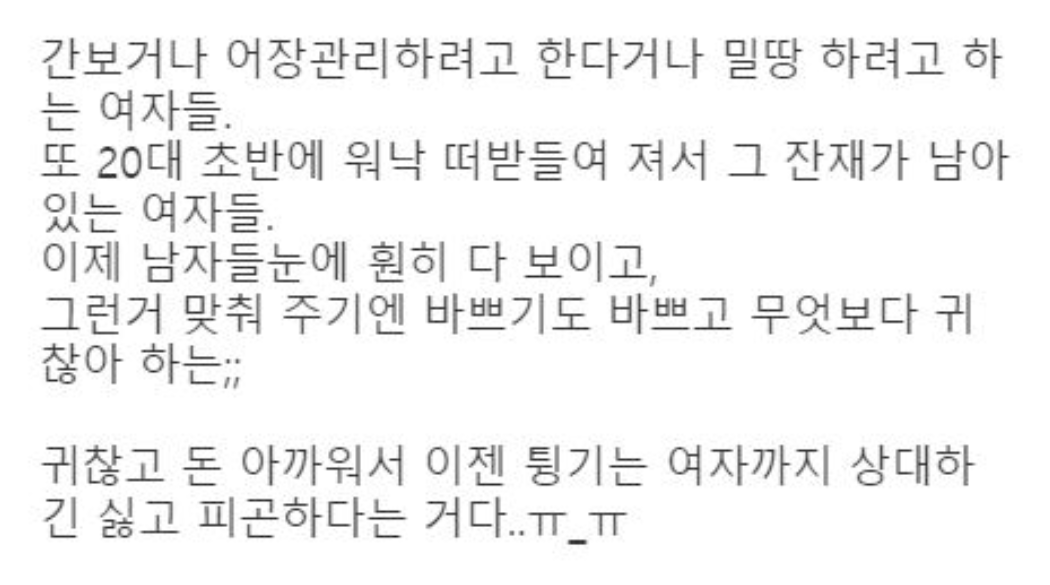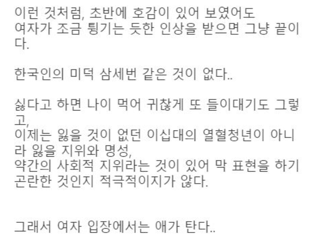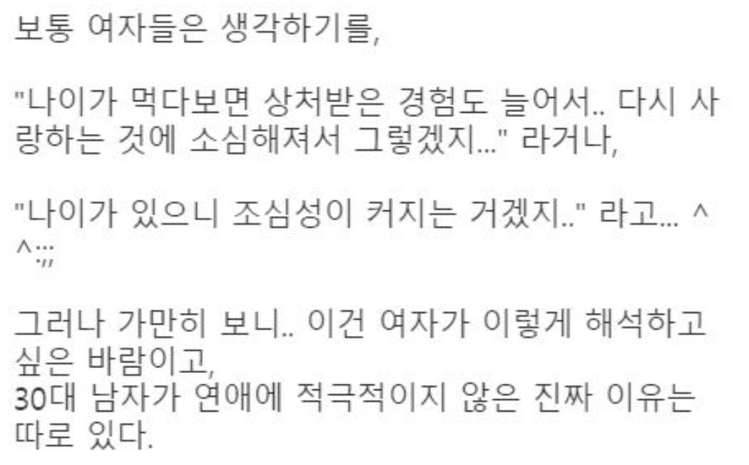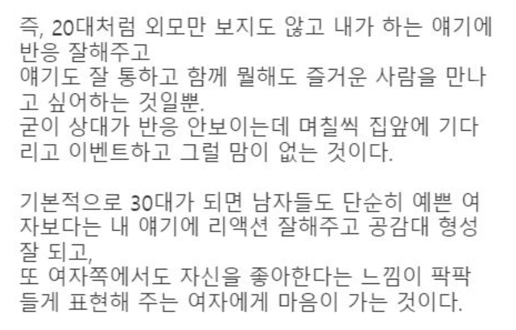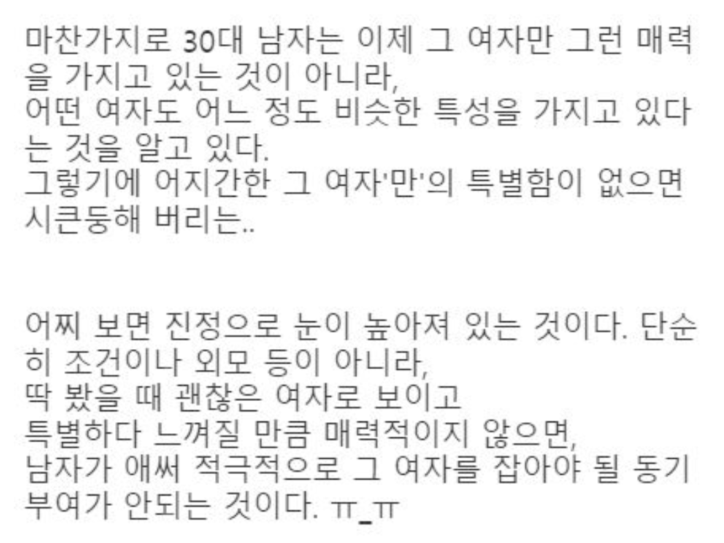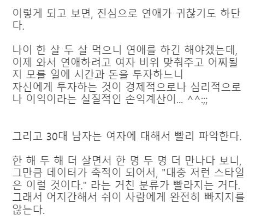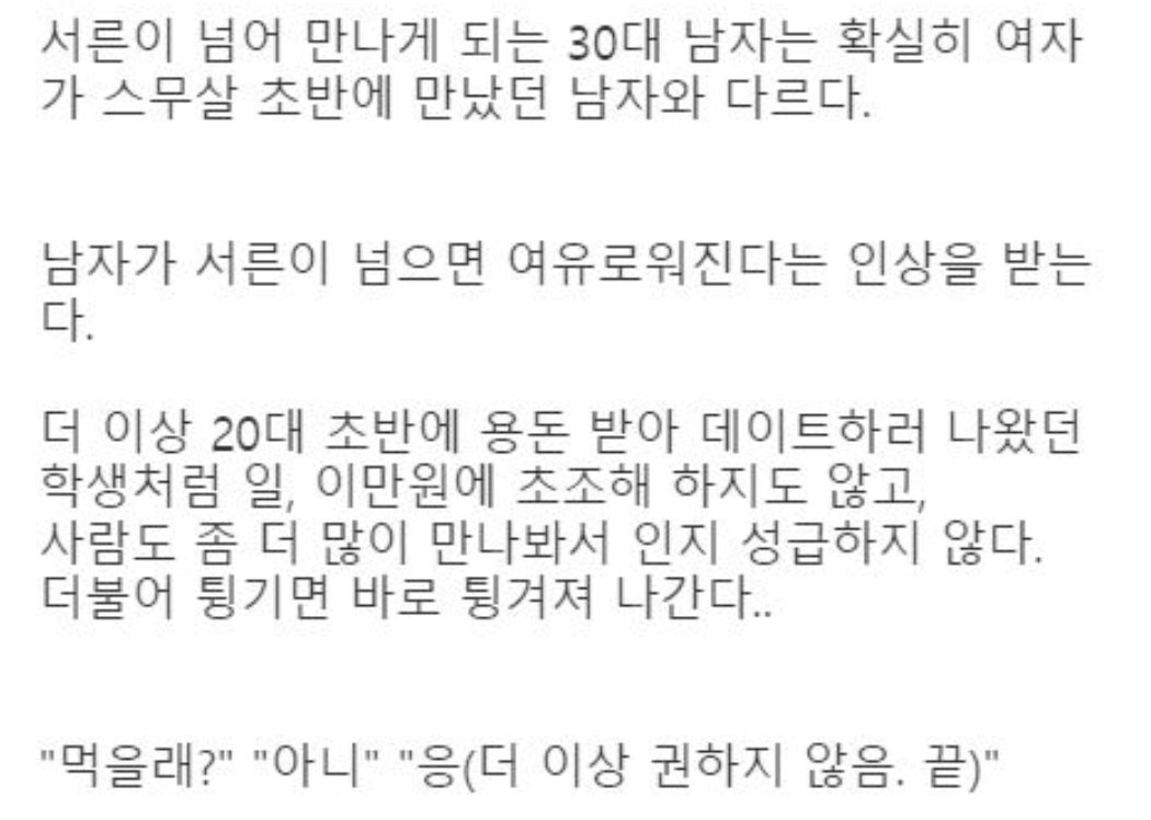 30대의 남자는 20대 초반 여자가 만났던 남자와 다르다