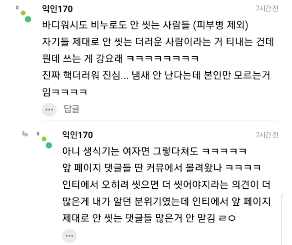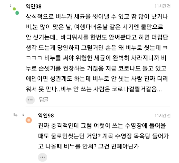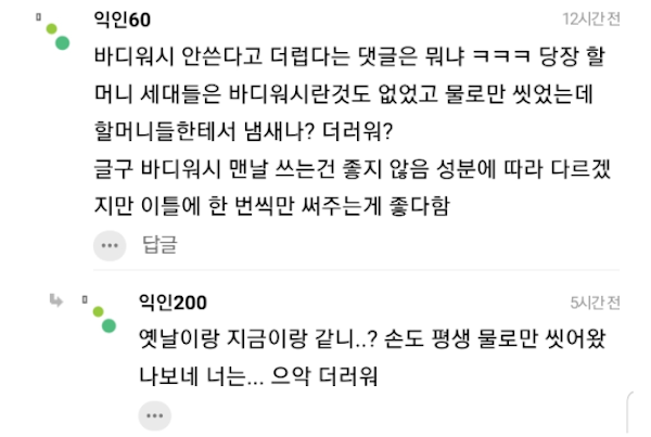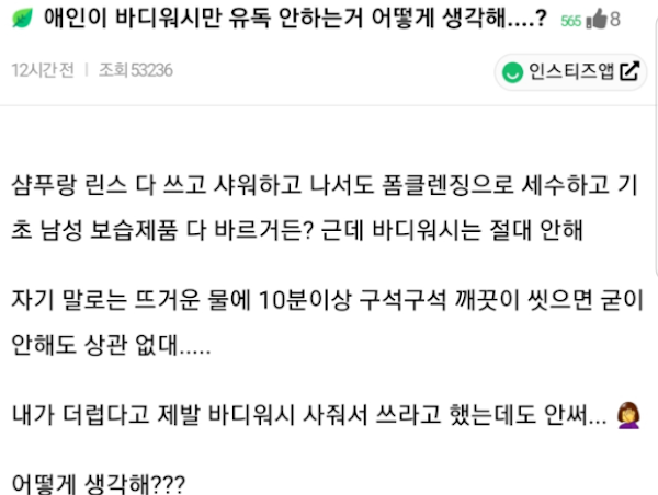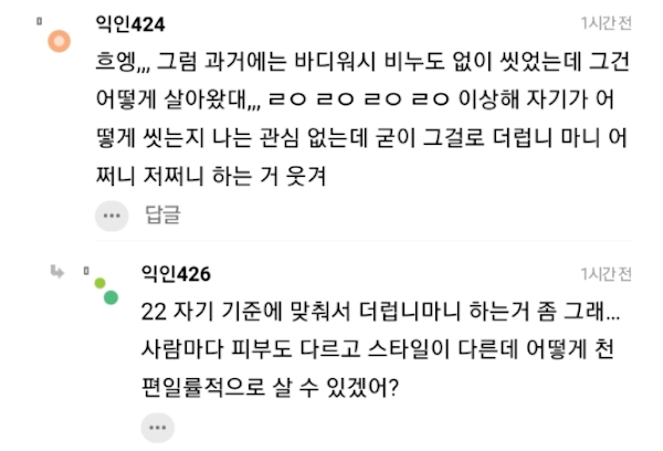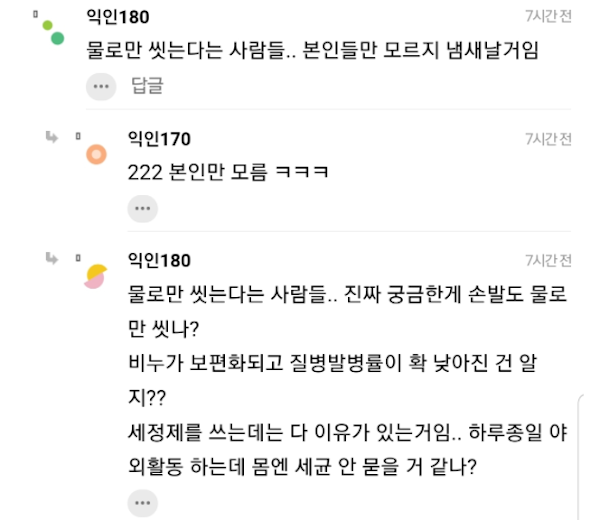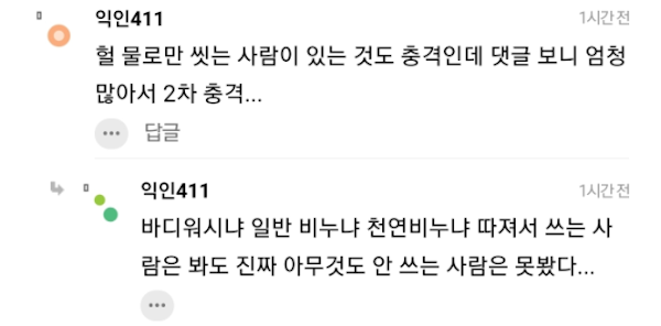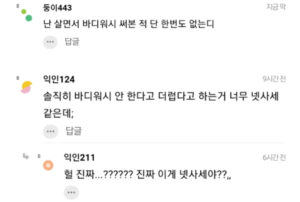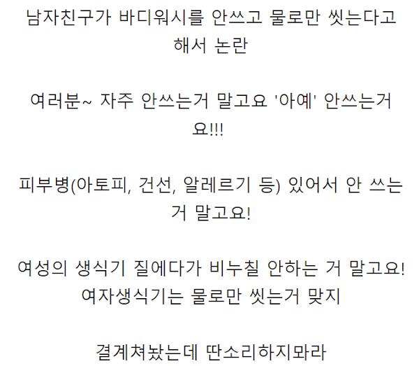일부 남자들이 바디워시를 사용하지 않는다고 하던데