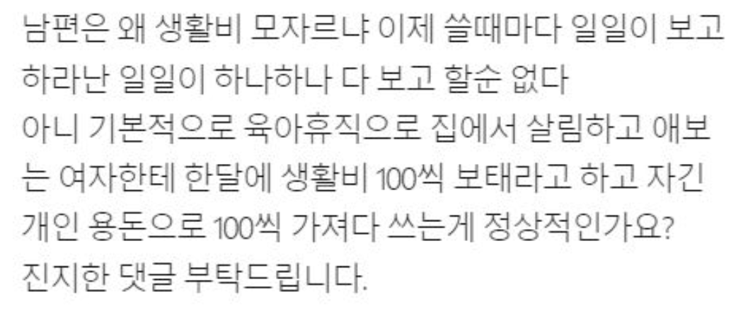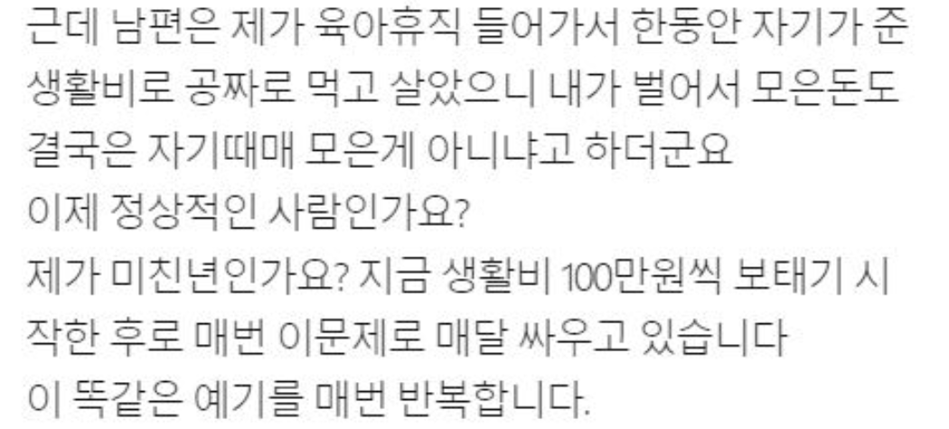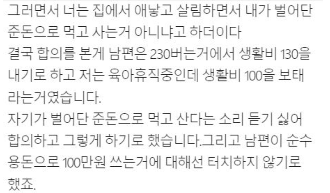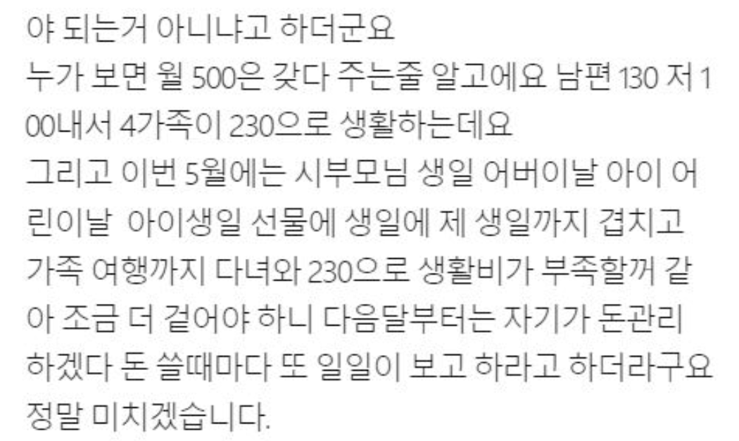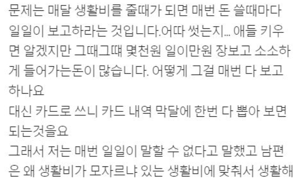 생활비 겨우 130만원 주면서 매번 쓴 내역 보고하라는 남편