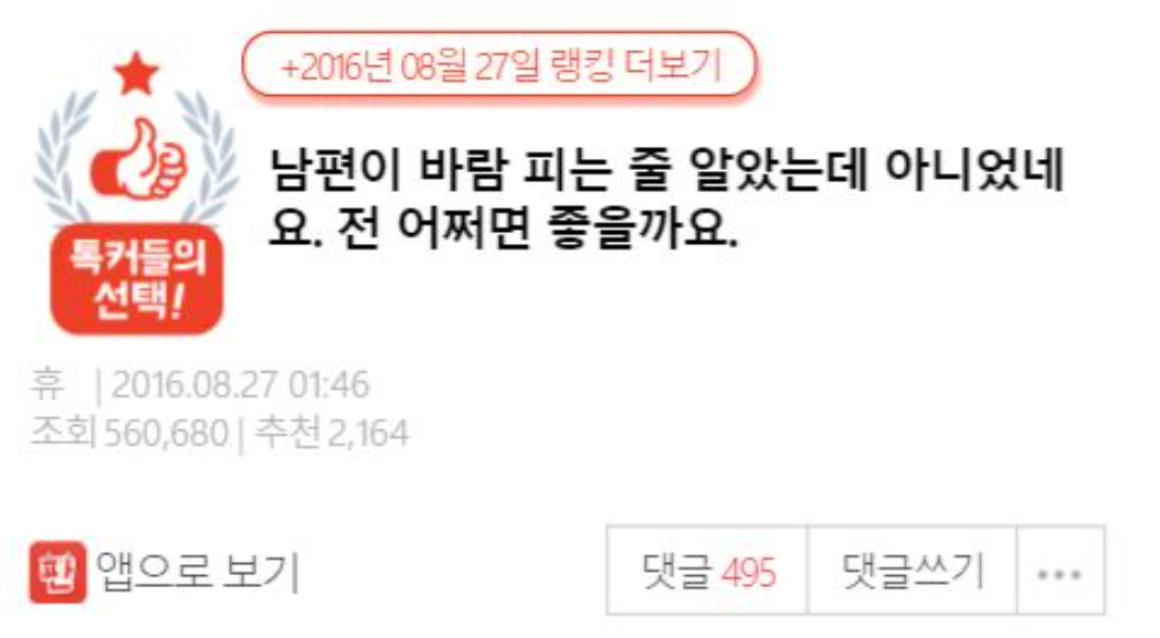 차라리 남편이 바람이었으면 편안하게 헤어질 수 있었는데