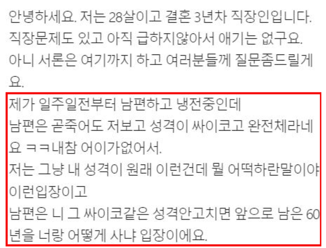 남편이 저보고 성격 안고쳐먹으면 같이 못산다고 합니다