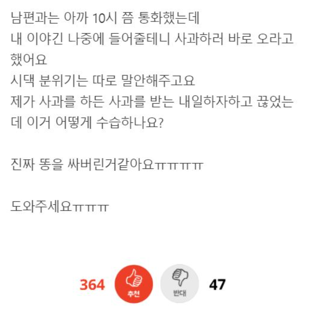 시어머님한테 말대꾸했는데 수습이 안됩니다