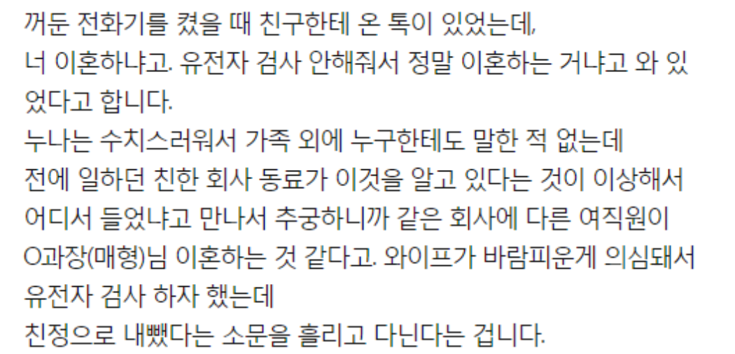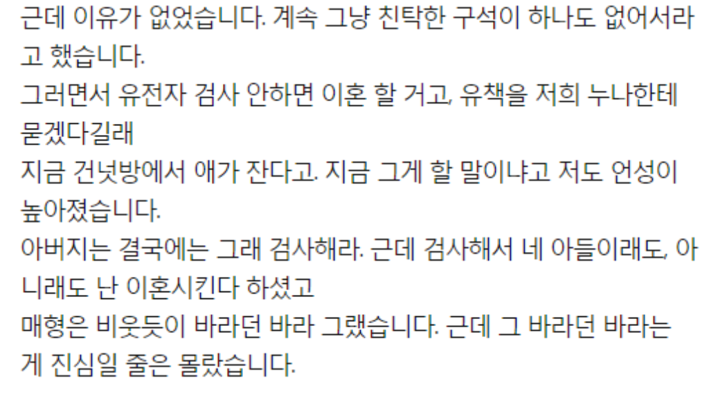 편히 lee.혼하려고 유전자 검사 들먹인 남편