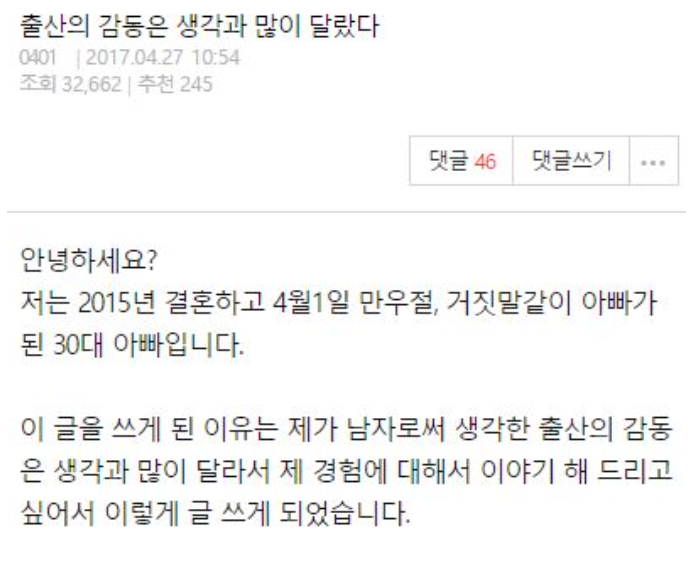 출산의 감동은 이상과 현실이 너무 다릅니다