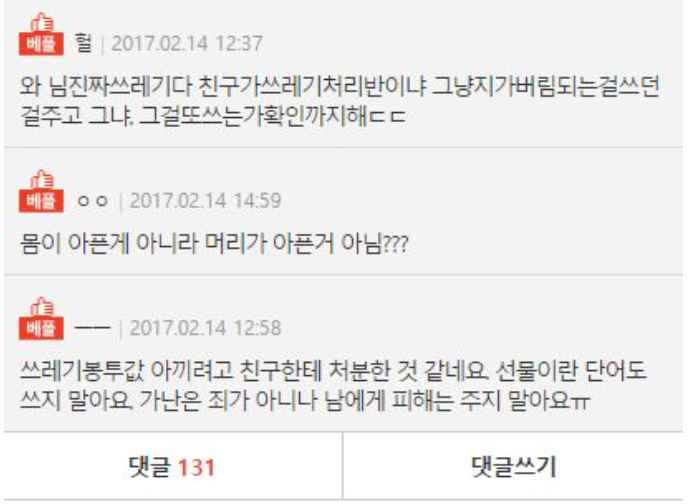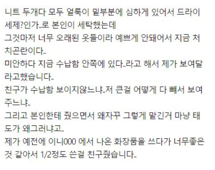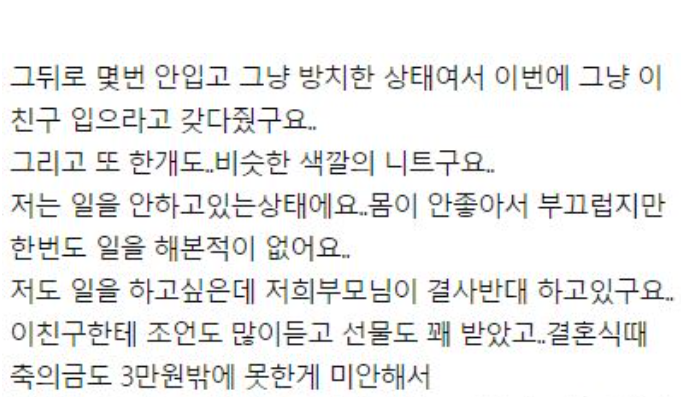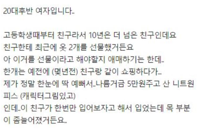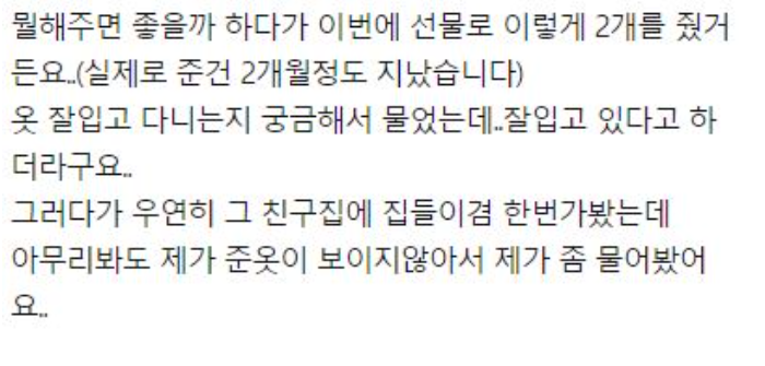 친구한테 안 입는옷을 선물했습니다