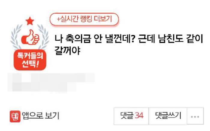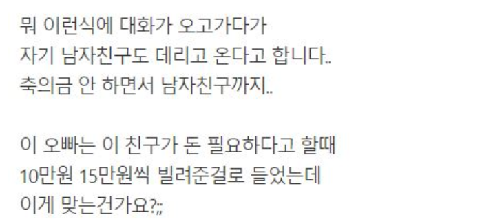 너 결혼식에 축의금 안내고 남친도 데려 갈꺼야