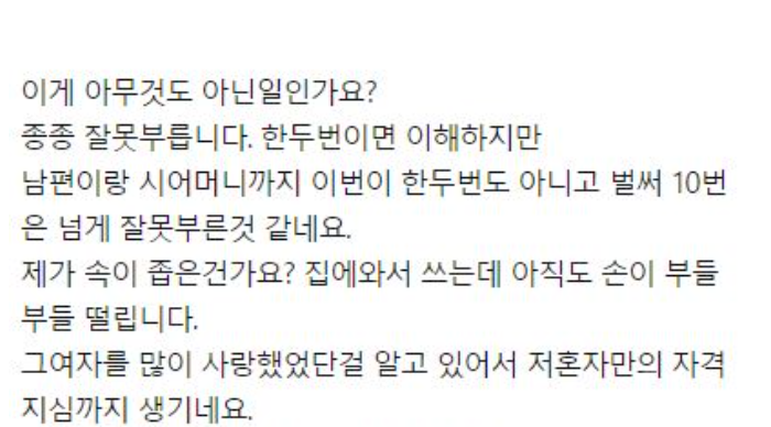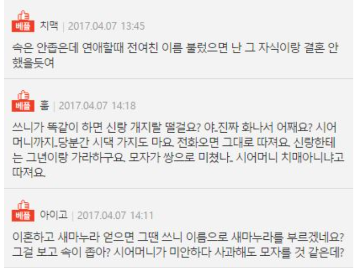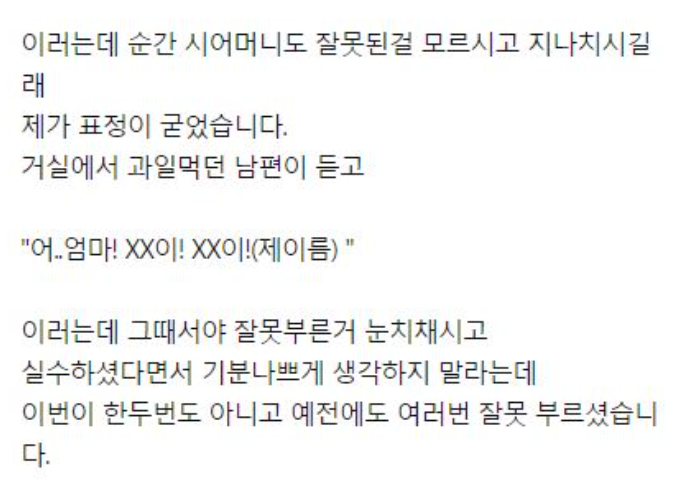 나를 전여친 이름으로 부르는 시어머니와 남편