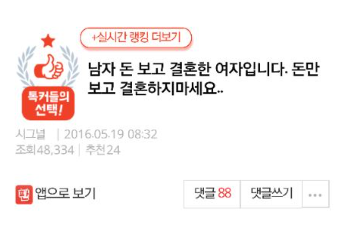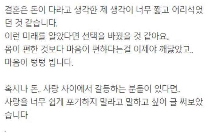 남자 돈보고 결혼한 사람인데 돈만보고 결혼하지 마세요