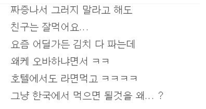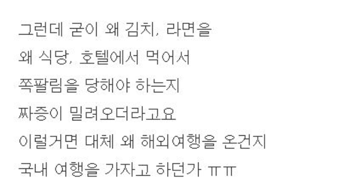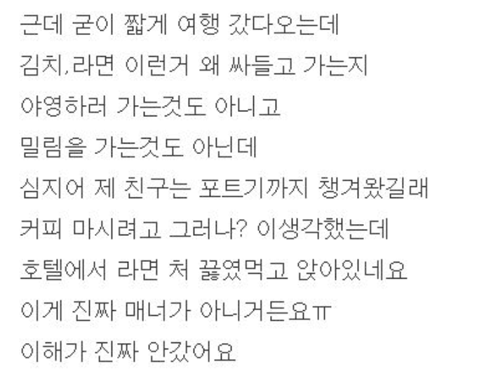 여행 가면서 굳이 김치, 라면 싸들고 가는거 민폐 아닌가요 ?