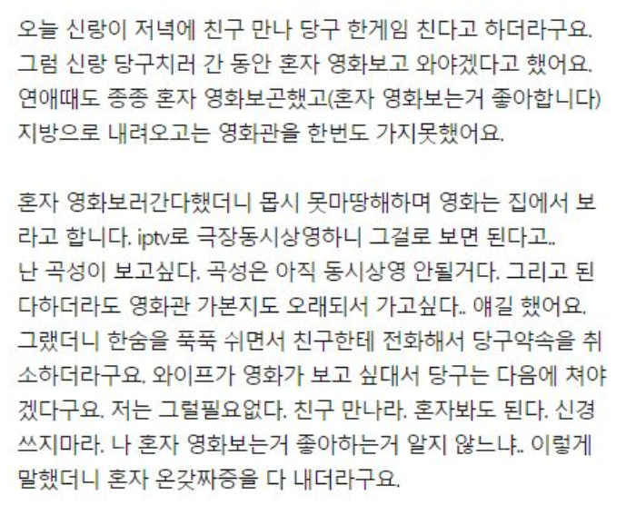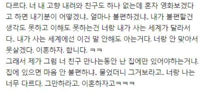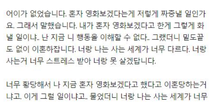 혼자 영화보러 간다고 하니 이.혼 하자는 남편