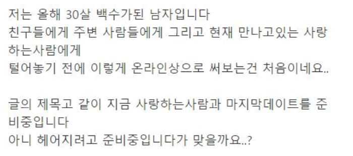 마지막 데이트를 준비 중인 30살 백수 남자