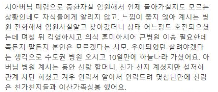 항상 나를 잡아 먹으려던 시어머니, 암에 걸리셨다네요