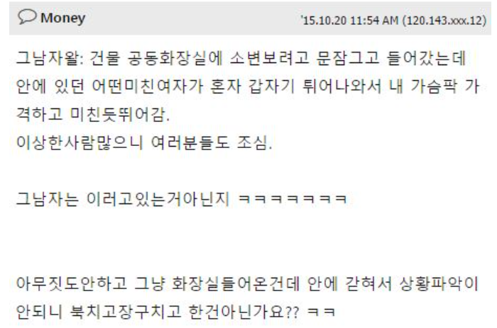 공중 화장실에서 큰일 날뻔한 경험ㅠㅠ 다들 조심하세요