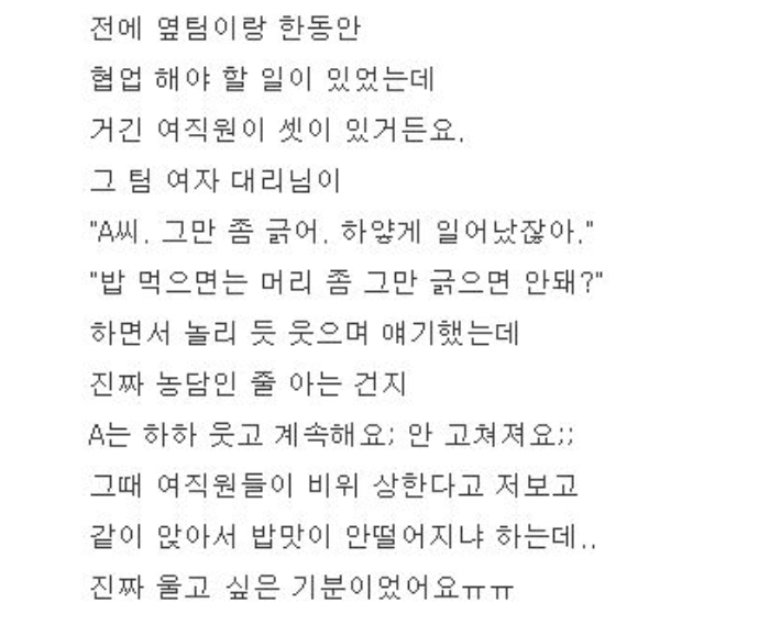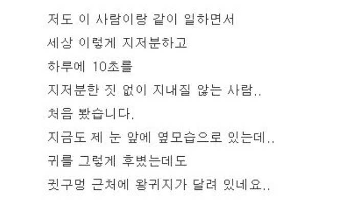 더러운 직장동료 때문에 ㅁ1치겠어요