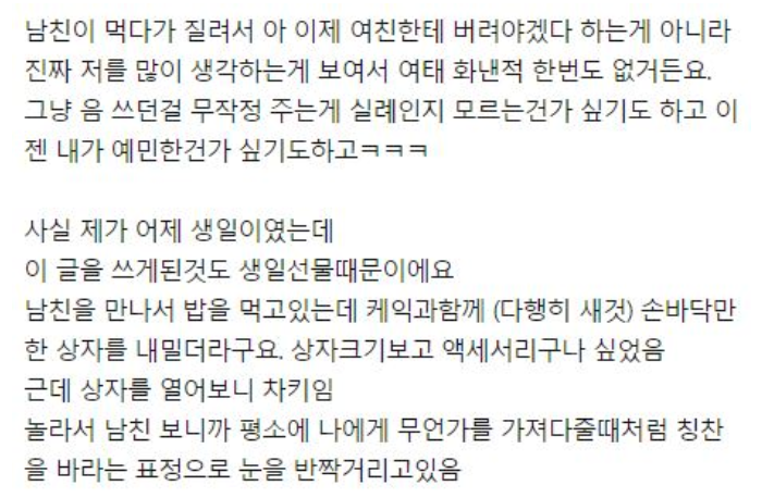마음은 고마운데 자꾸 중고품만 주는 남자친구