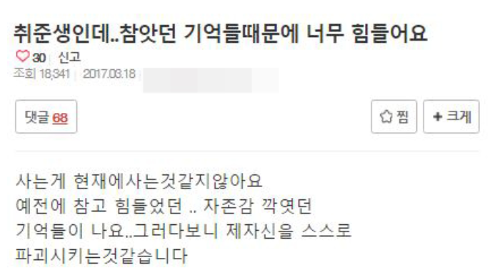취업준비생인데 참았던 기억 때문에 너무 힘들어요