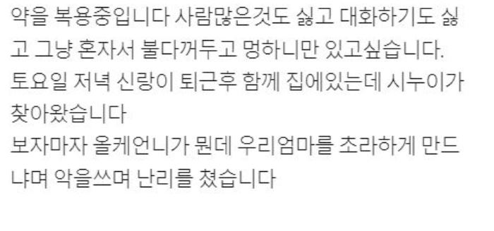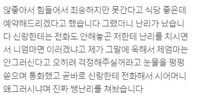 결혼하고 나서 더 이상 참지 못하고 본인이 하고 싶은 대로 할 며느리